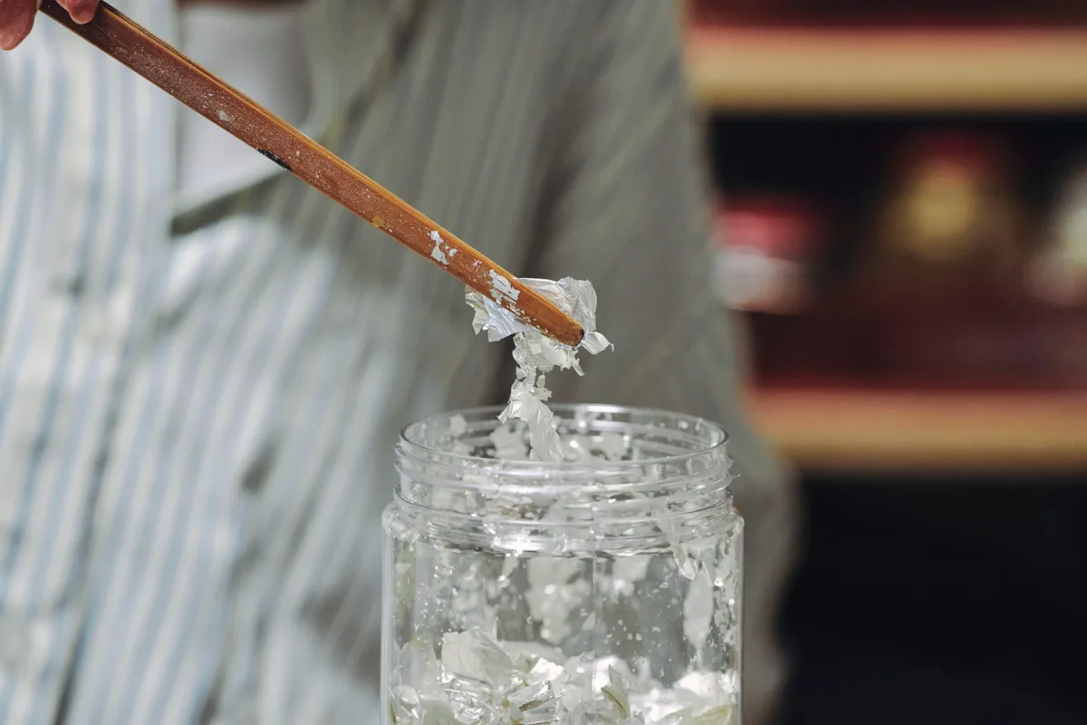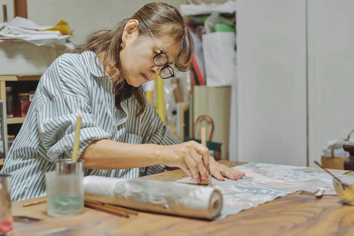 今回ご紹介するのは、京都府京都市で金彩作家として活動する「金彩上田」の上田奈津子さん。金彩とは、金や銀の箔、金粉などを糊で接着し、装飾する日本の伝統的な技術です。室町時代に始まり、安土桃山〜江戸時代にかけて茶の湯文化や友禅染の発展とともに広がっていきました。着物の世界では友禅を華やかに装飾する最終工程として用いられ、職人の感性と熟練の技が求められます。