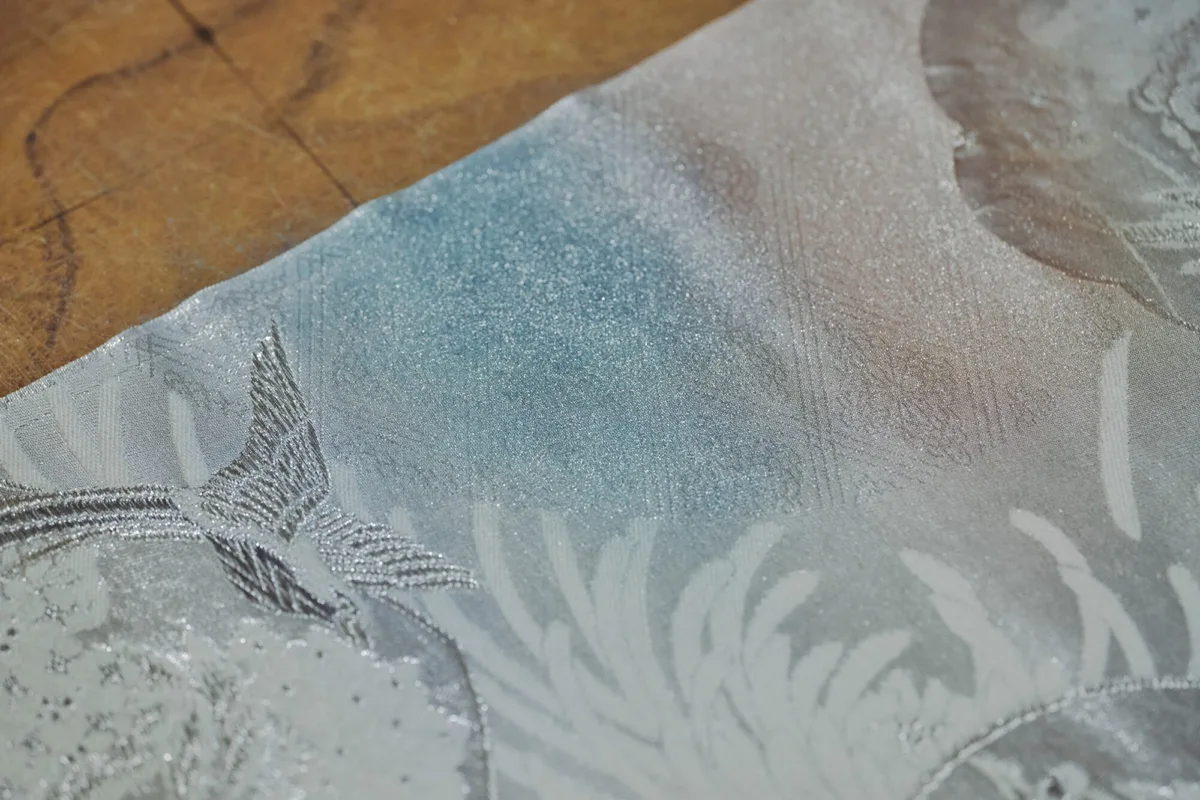 上田さん:そうですね。ただお直しするのではなく、金彩ならではのご提案ができるのはうちの強みだと思います。先ほどの汚れを金彩で隠すのもそうですし、ほかにも破れている箇所に裏から当て布をし、表側に細かく金彩を入れて刺繍のように見せることもできます。これは他ではあまり見たことがない方法なので、金彩を密に入れられるという技術あってのリペアかなと思います。