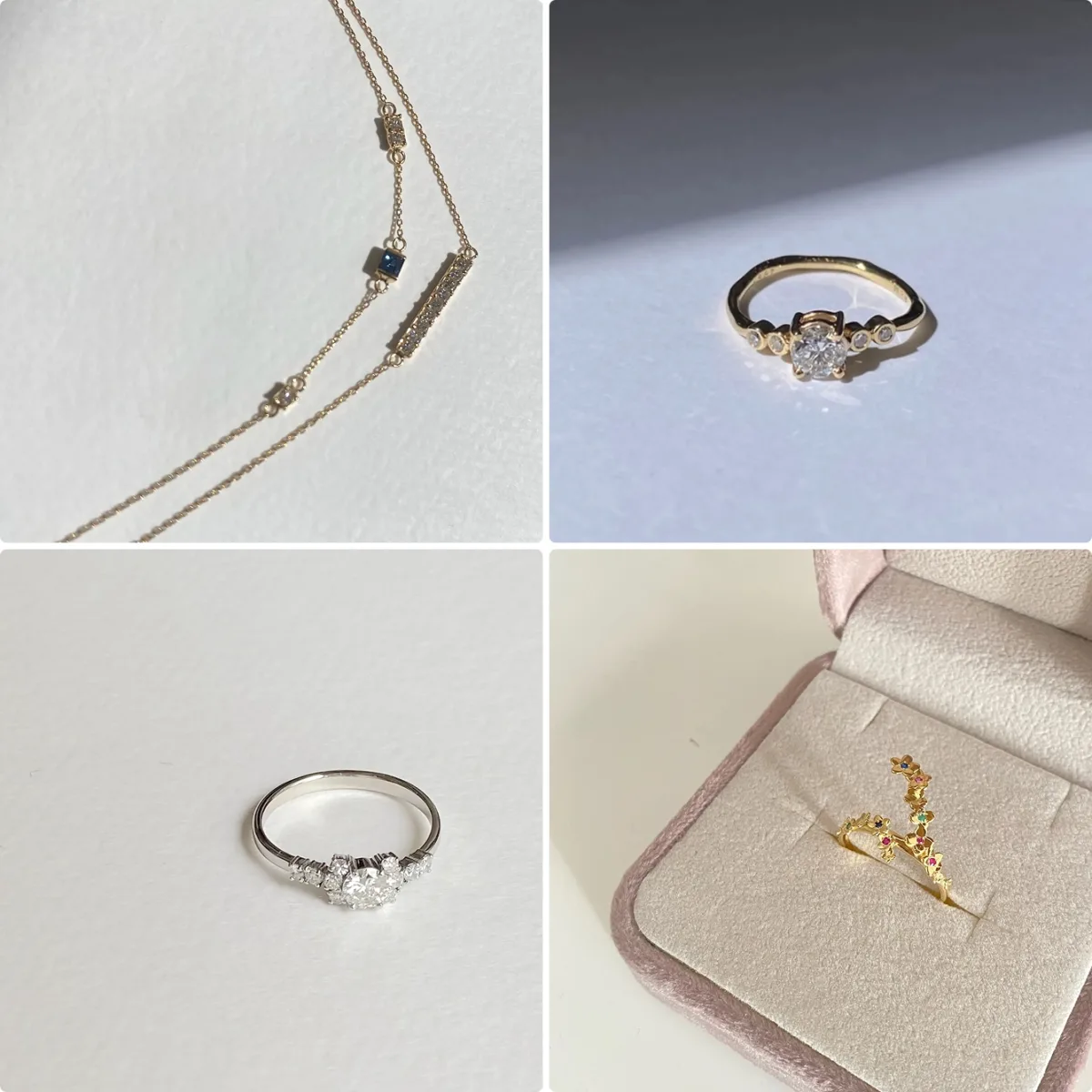 オーナーは、服飾学科を卒業後、ブライダル衣装やスタイリング、商品企画、バイヤー、PRなど、幅広い分野でキャリアを積んできました。その後、ニューヨークで出会った自由なジュエリーデザインに衝撃を受け、彫金の世界へ転身。「日々の中で支えになるようなジュエリーを届けたい」という想いから、東京でブランドを立ち上げています。ブライダルやTPOで培ったスタイリングの知識に加え、バイヤーとして触れてきた海外の感性、さらにカラーアナリストとしての視点も活かしながら、一人ひとりに“似合う”ジュエリーを提案・製作しています。