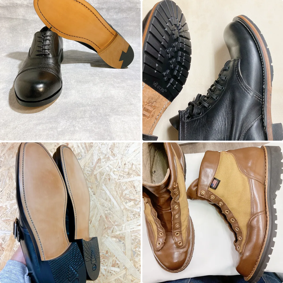 修理の場合は、ソール交換、ヒール修理、アッパーの補修などが中心となります。メンテナンスの場合は、靴磨き、クリーニング、栄養補給などを検討します。